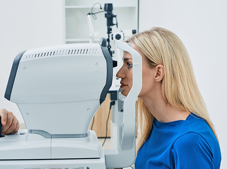 Many diabetes-related eye conditions develop without obvious symptoms, making comprehensive exams essential. Our doctors examine your retina, lens, and eye pressure using diagnostic technology, including:
